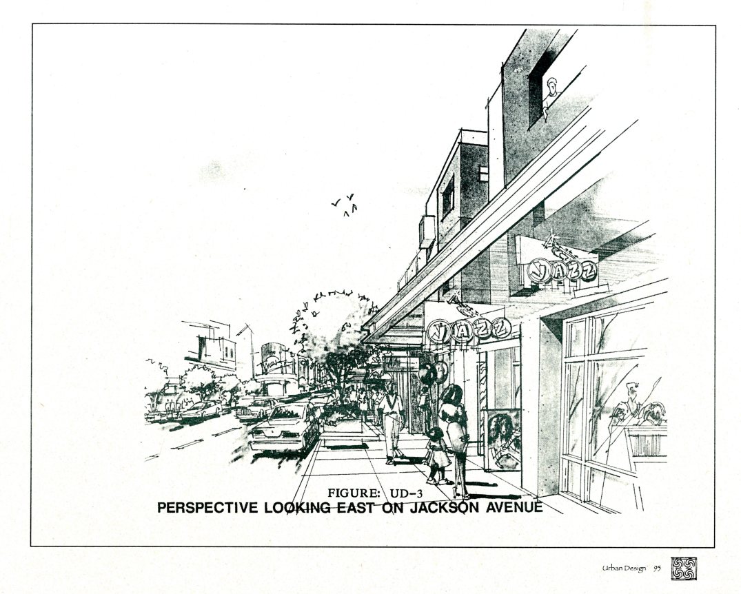 While going through the archives in the Architectural Studies Library (ASL) on campus, I found the 1994 West Las Vegas Plan with some streetscape and gateway plans for the community. Included was a perspective of Jackson St. and how it could be more pedestrian friendly. I noticed in the drawing that the businesses consisted of transparent storefronts and vegetation, along with large overhangs to provide shading. How can our team incorporate this idea and integrate it into a CIR?